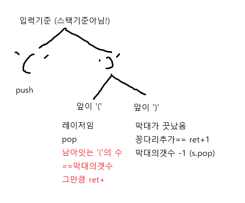 백준 10799 c++ // 스택응용 idea, 남은'('의 갯수를 활용하라 본문
