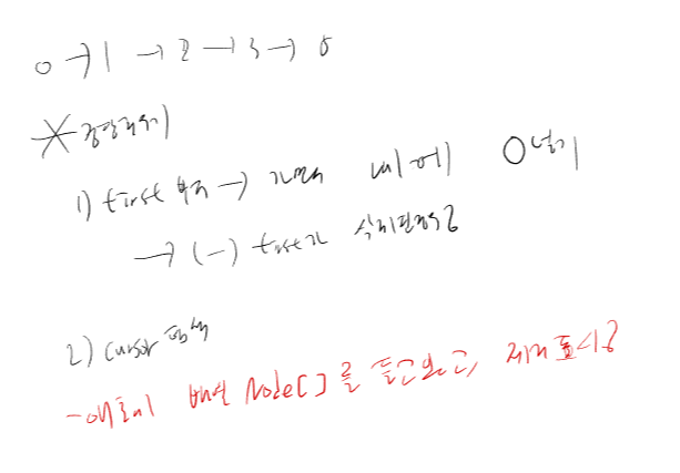 else cursor = cursor->next; //마지막노드가아니면 다음노드를 가르킴