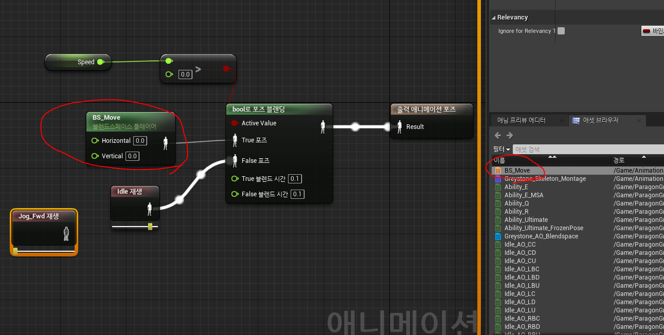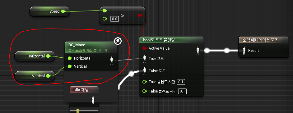 4. 애니메이션블루프린트::Speed>0 포즈교체