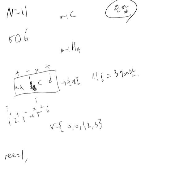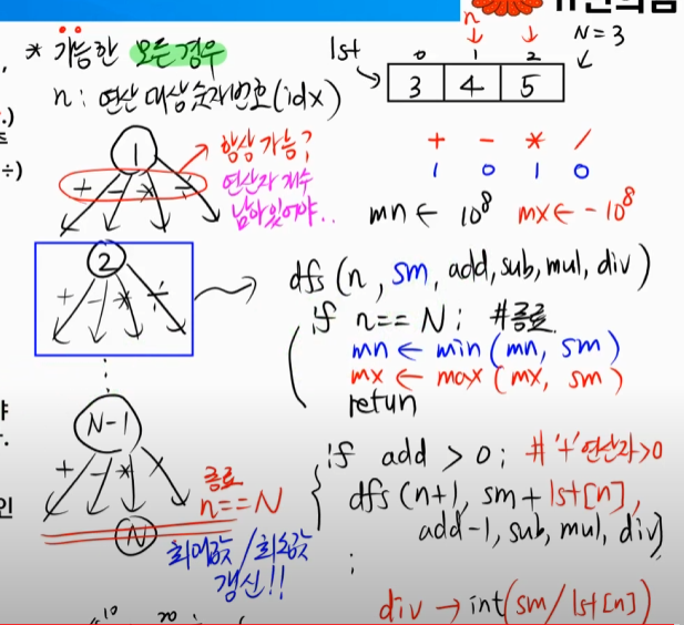 - dfs : 4^11 // (+ - * / ) 4가지경우, depth=11까지