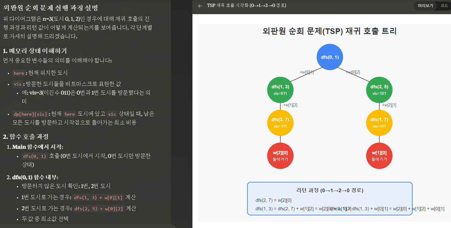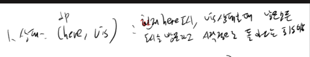 1. dfs(현재도시, 방문한도시체크용 비트)