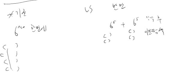 같은 상태가 중복되지 않는다... and 매 상태마다 6^5 * 6^5 -> 완탐이나 마찬가지임