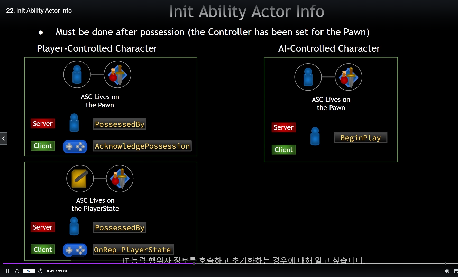// AuraPlayerState의 능력 시스템 컴포넌트를 이용하여 액터 정보를 초기화