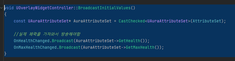 OnMaxHealthChanged.Broadcast(AuraAttributeSet->GetMaxHealth());