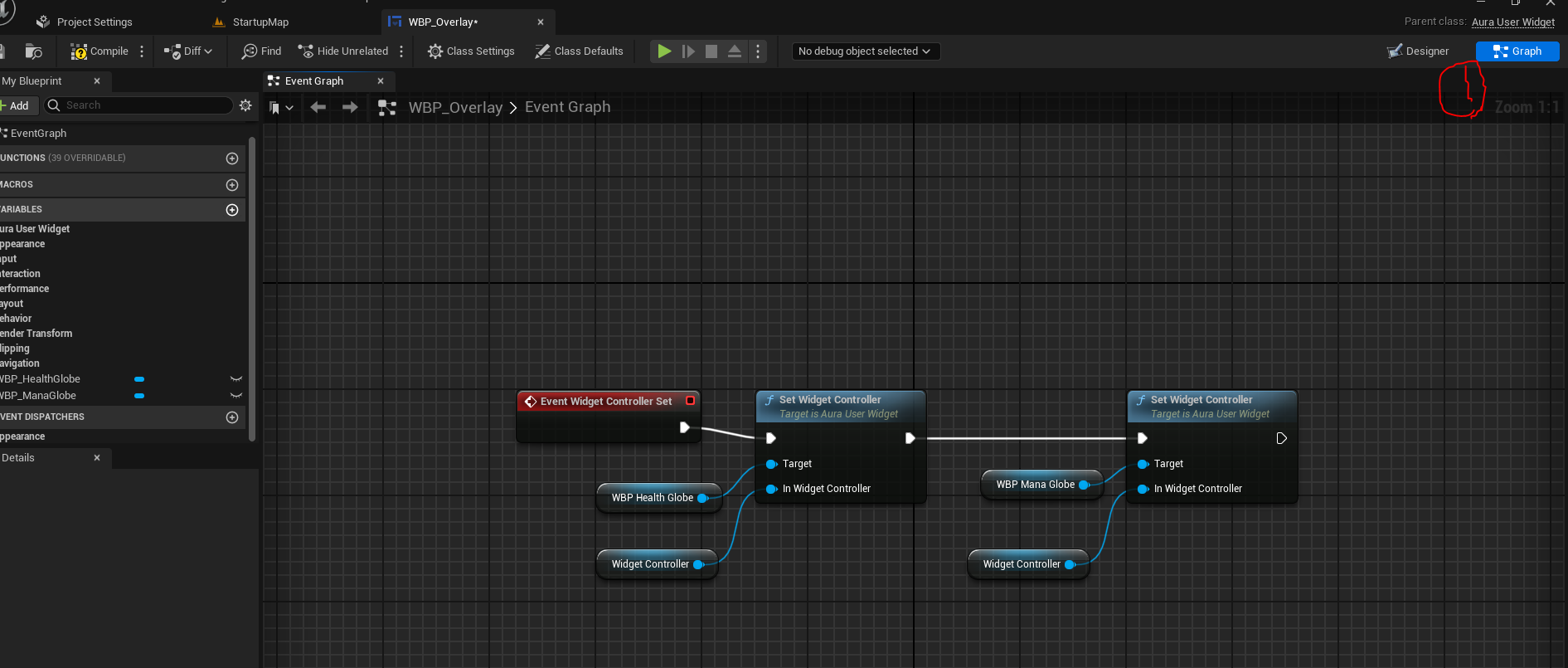걔들의 컨트롤러를 WidgetController(오버레이의 컨트롤러와 같도록)로 설정해준다.