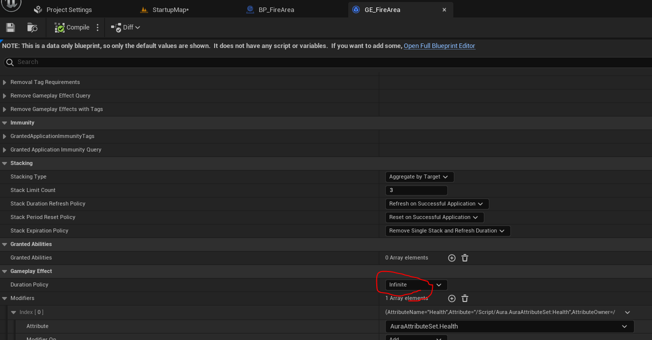 TSubclassOf<UGameplayEffect> InfiniteGameplayEffectClass;