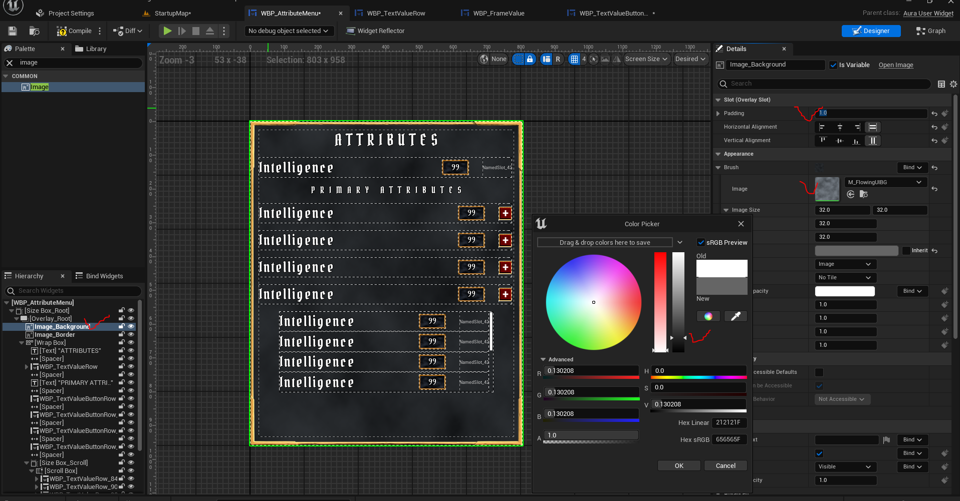 [UE5] 속성메뉴 설계, 속성위젯 디자인 구현 본문