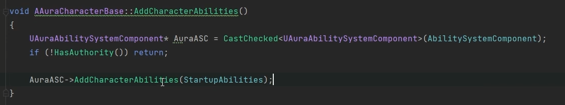 UAuraAbilitySystemLibrary::GiveStartupAbilities(this,AbilitySystemComponent);