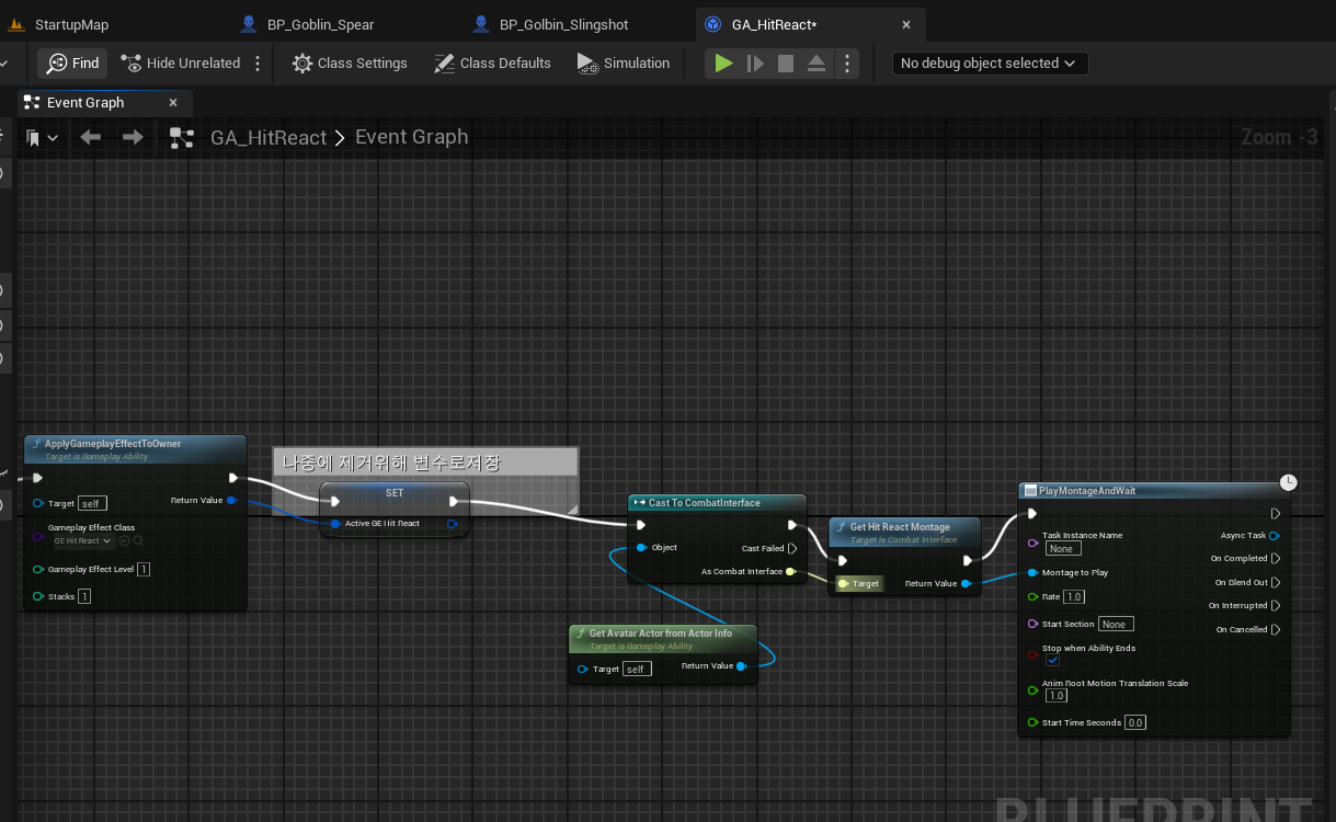GetCharacterMovement()->MaxWalkSpeed = bHitReacting?0.f:BaseWalkSpeed; //맞는중에는 못움지기게