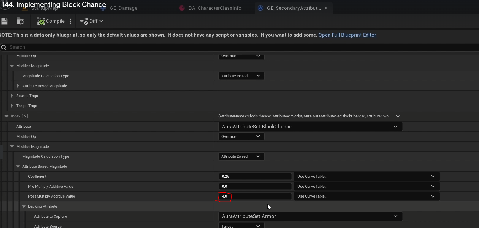 DEFINE_ATTRIBUTE_CAPTUREDEF(UAuraAttributeSet, BlockChance, Target, false); //아머라는 속성을 캡쳐하겠다.