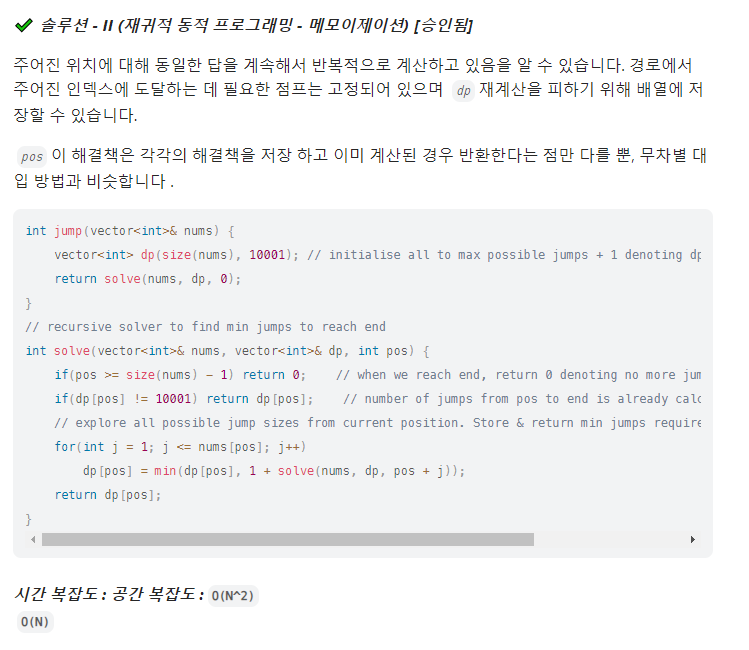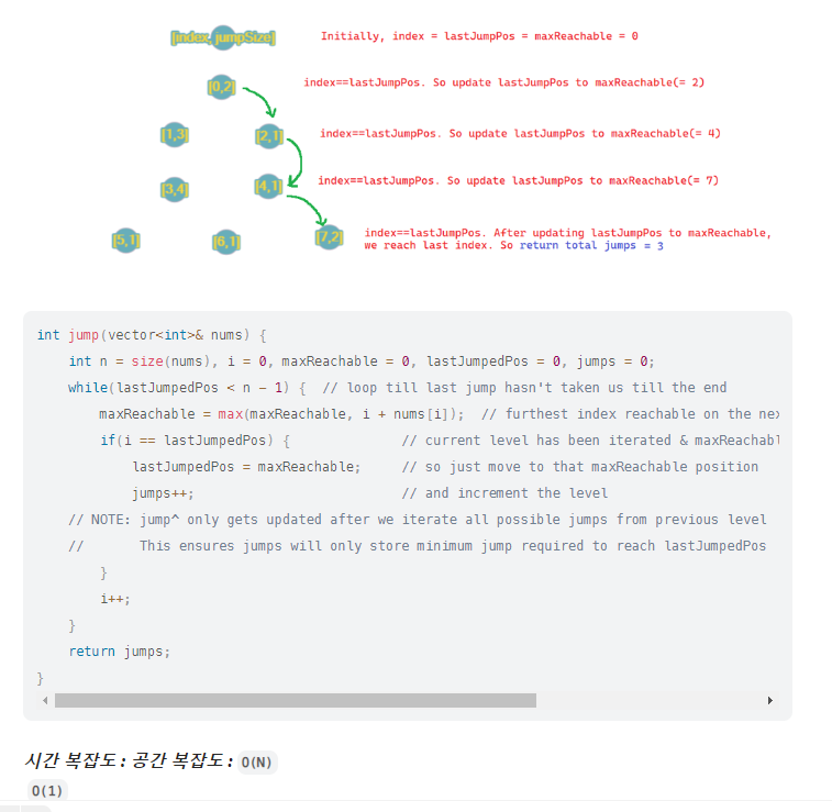 [알고리즘] 리트코드 45. 점프 게임 II c++ // dp, 그리디 bfs 본문
