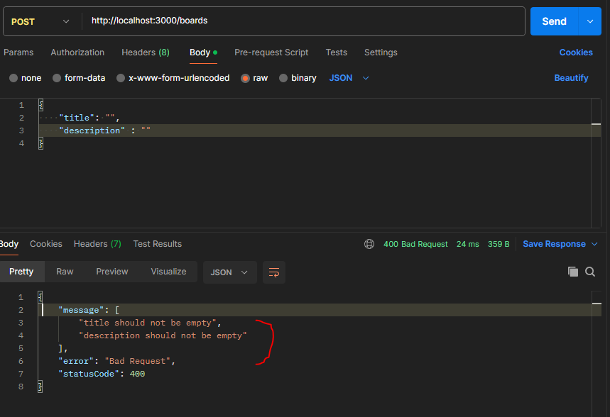 * dto 변수위에 @IsNotEmpty 등 달아주기