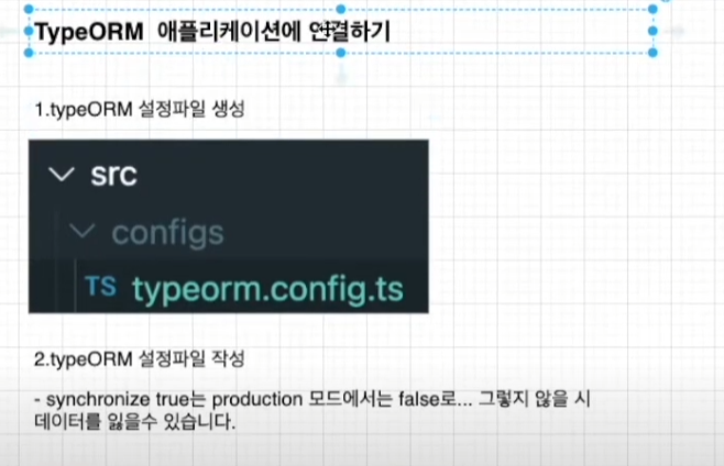 synchronize: true //true -> app 재실행시, 수정된 컬럼의 테이블 drop후 재생성