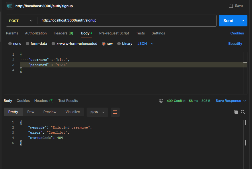 throw new ConflictException('Existing username');