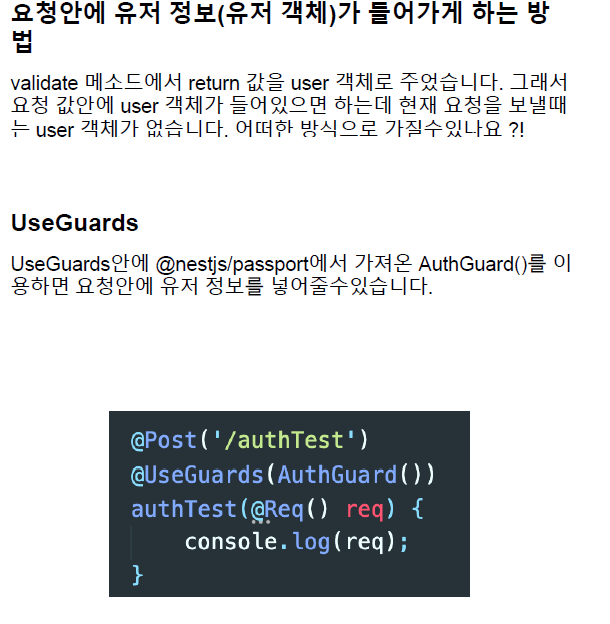 [Nest JS] Passport , jwt => 토큰인증후 유저정보 가져오기 / @UseGuard 미들웨어 본문