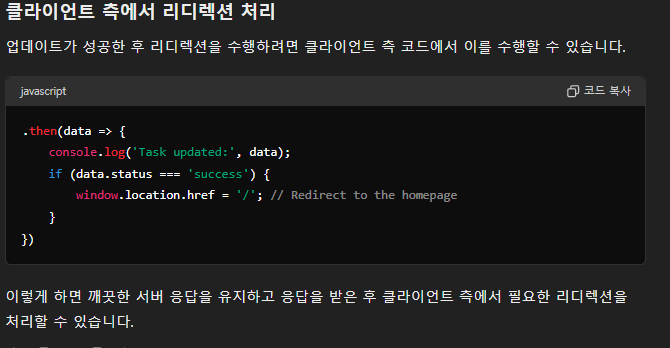 * 원래 나의 의도 : update후 다시 redirect를 보내 홈화면을 재 렌더링 하고자 했다.