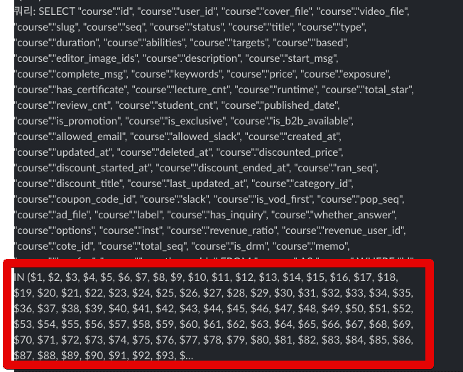 이 쿼리가 평소에는 문제가 없었지만, 이번 이벤트의 경우 125개의 강의를 100% 할인하는 것이 원인이 되었습니다.
