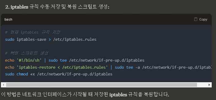 * 해결 : iptables-persistent 사용