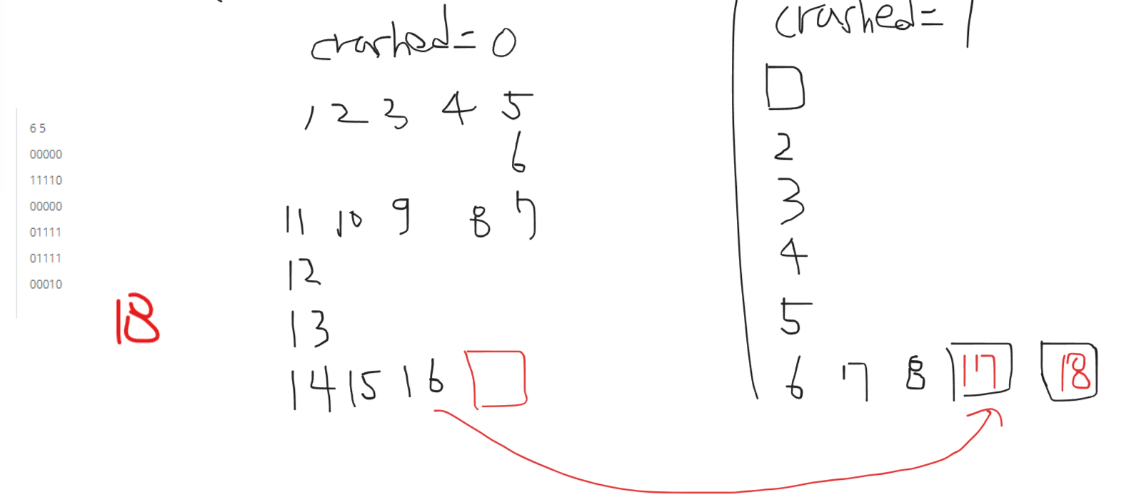 - crashed=1인 상태에서는 1을 만난경우, 진행을 못한다.