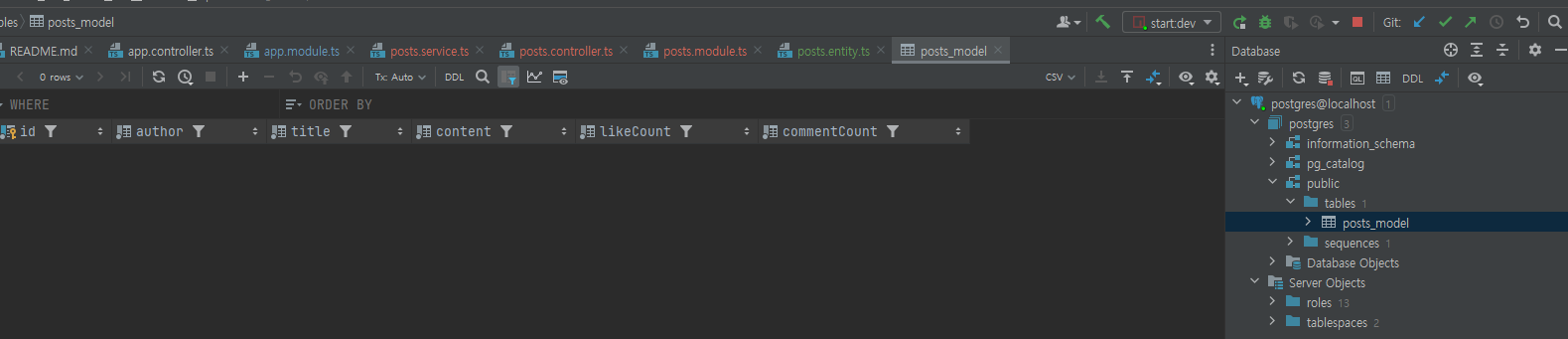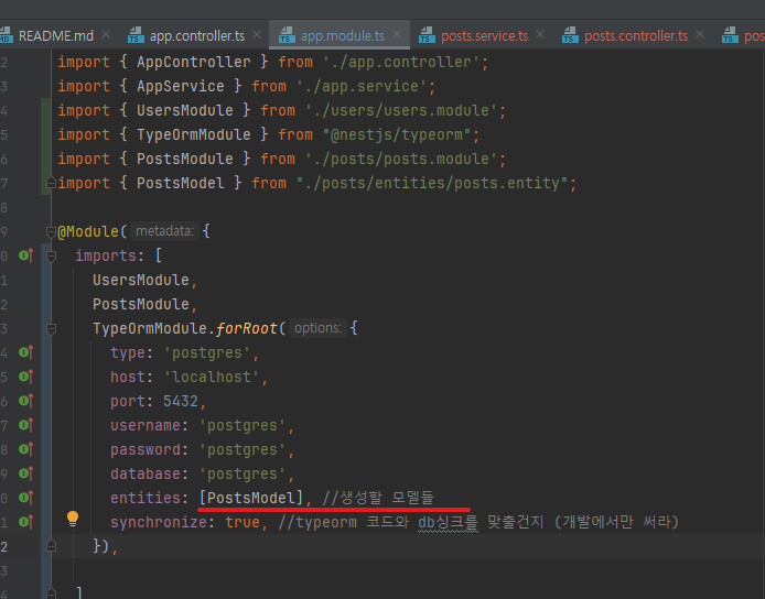 [Nest] typeorm 설정, 모듈생성, 의존성주입, No metadata for "PostsModel" was found 문제해결 본문