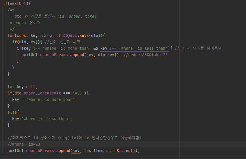 nextUrl.searchParams.append(key, dto[key]); //order=ASC&take=20