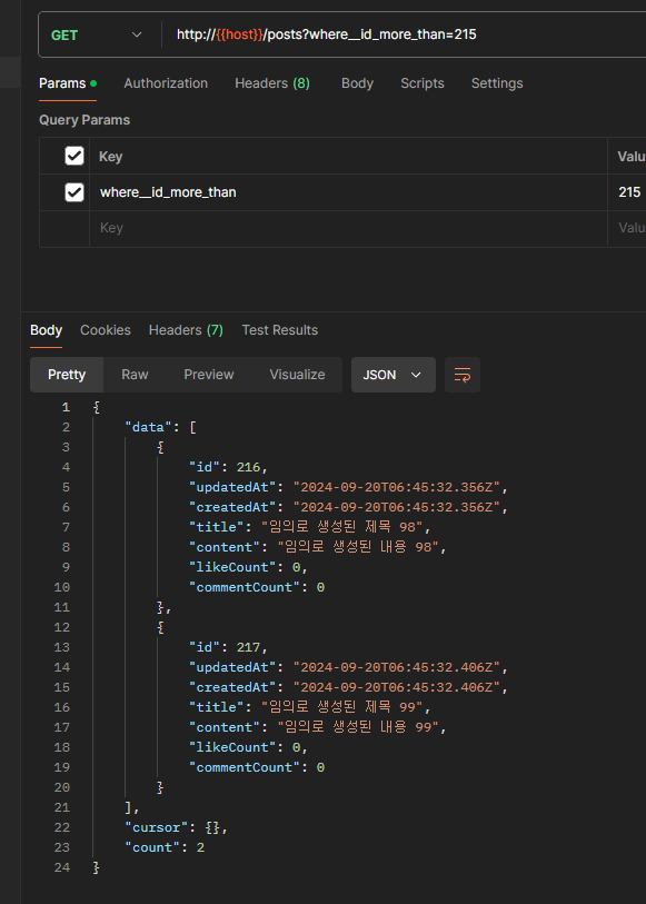 //가져온 게시물의길이 === 가져와야할 게시글 -> 정상작동