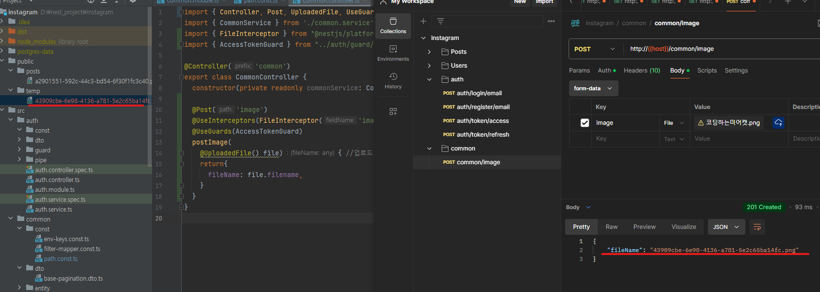 - 이후에 서버에서 temp에서 posts 폴더로 이미지들을 옮기면 됨.