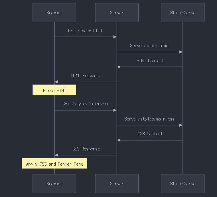 - 일단 설계도에 따라 정적파일이 제공된경우 바로 return 되도록했다. (이를위해 미들웨어 밖으로 빼내야했다..)
