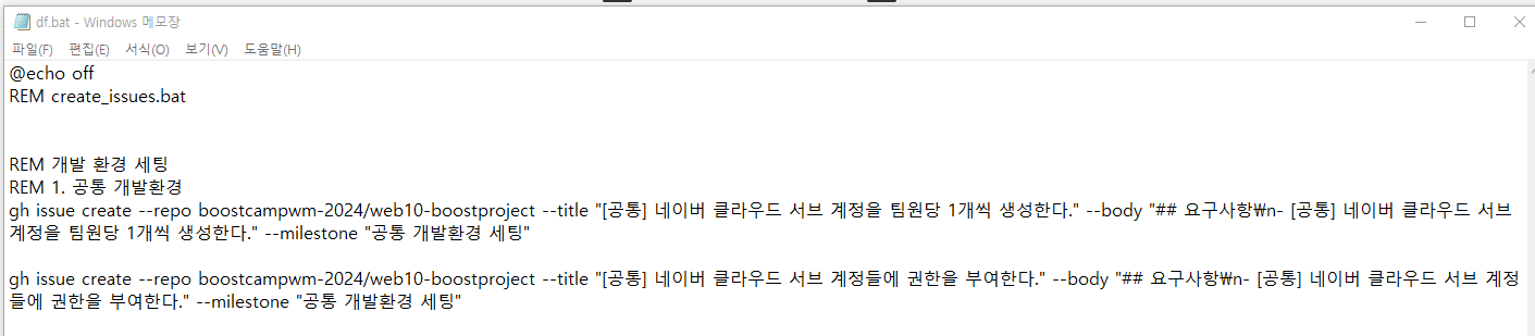 - 해결 : window의경우 .bat 을 이용해서 여러 명령어를 실행시킬 수 있다. (linux의 bash 느낌)