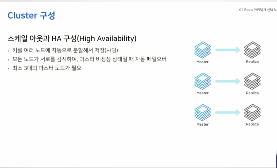- 단점 : 세팅이복잡하다. 복제 직전에 조회하는경우 데이터 정합성이 깨질수있다. 네트워크 비용증가.