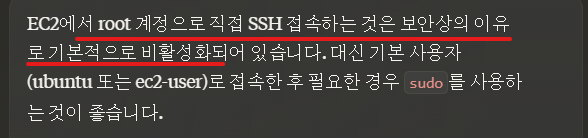 - 원인 : root 계정이기때문에 ssh가 안되는것같다.