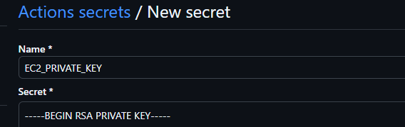 - github 세팅 > Actions에 .pem 의 내용 붙여넣기