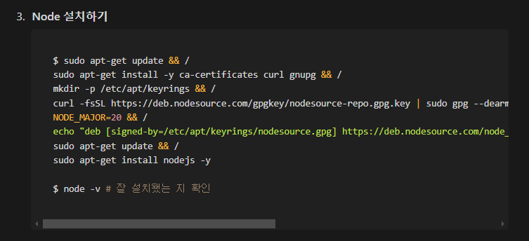 curl -fsSL https://deb.nodesource.com/gpgkey/nodesource-repo.gpg.key | sudo gpg --dearmor -o /etc/apt/keyrings/nodesource.gpg && /