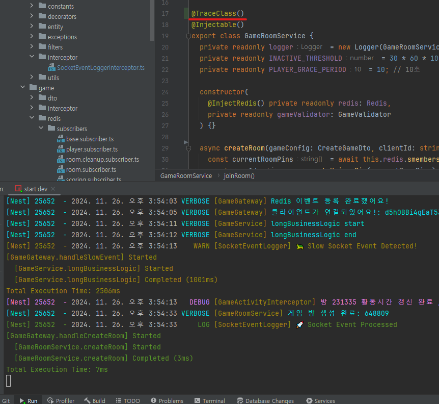 - 서비스 메소드 위에 @Trace를 달아주면 추적이 가능하다.