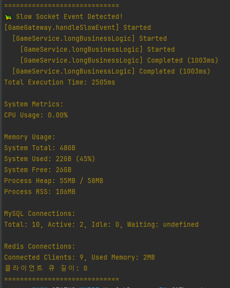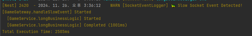 @WebSocketGateway({ transports: ['websocket', 'polling'], allowUpgrades: true, upgradeTimeout: 10000 })- Fallback 처리: