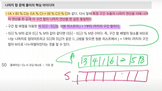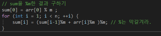 sum[i] = (sum[i-1]%m + arr[i]%m )%m; // %는 막갈겨라.