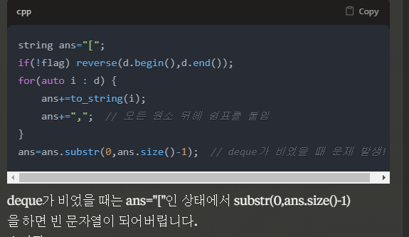 | 백준 5430 cpp // string find,+=시간복잡도, split 구현방법, 예외처리방법 (0) | 2023.08.22 |
