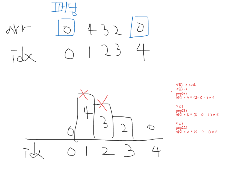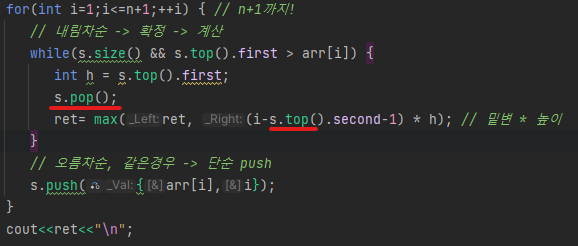 - 특이한점은 pop을 한후에 전전 막대의 idx 차이를 너비로 사용