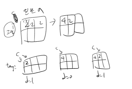 // 이전 숫자와 현재 숫자가 같고, 합치기가 가능하면