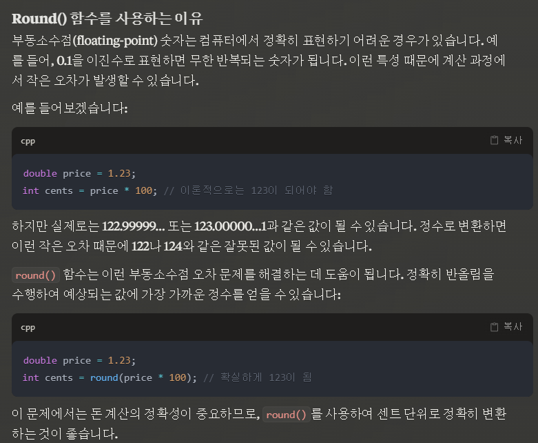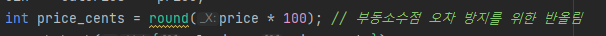 int price_cents = round(price * 100); // 부동소수점 오차 방지를 위한 반올림