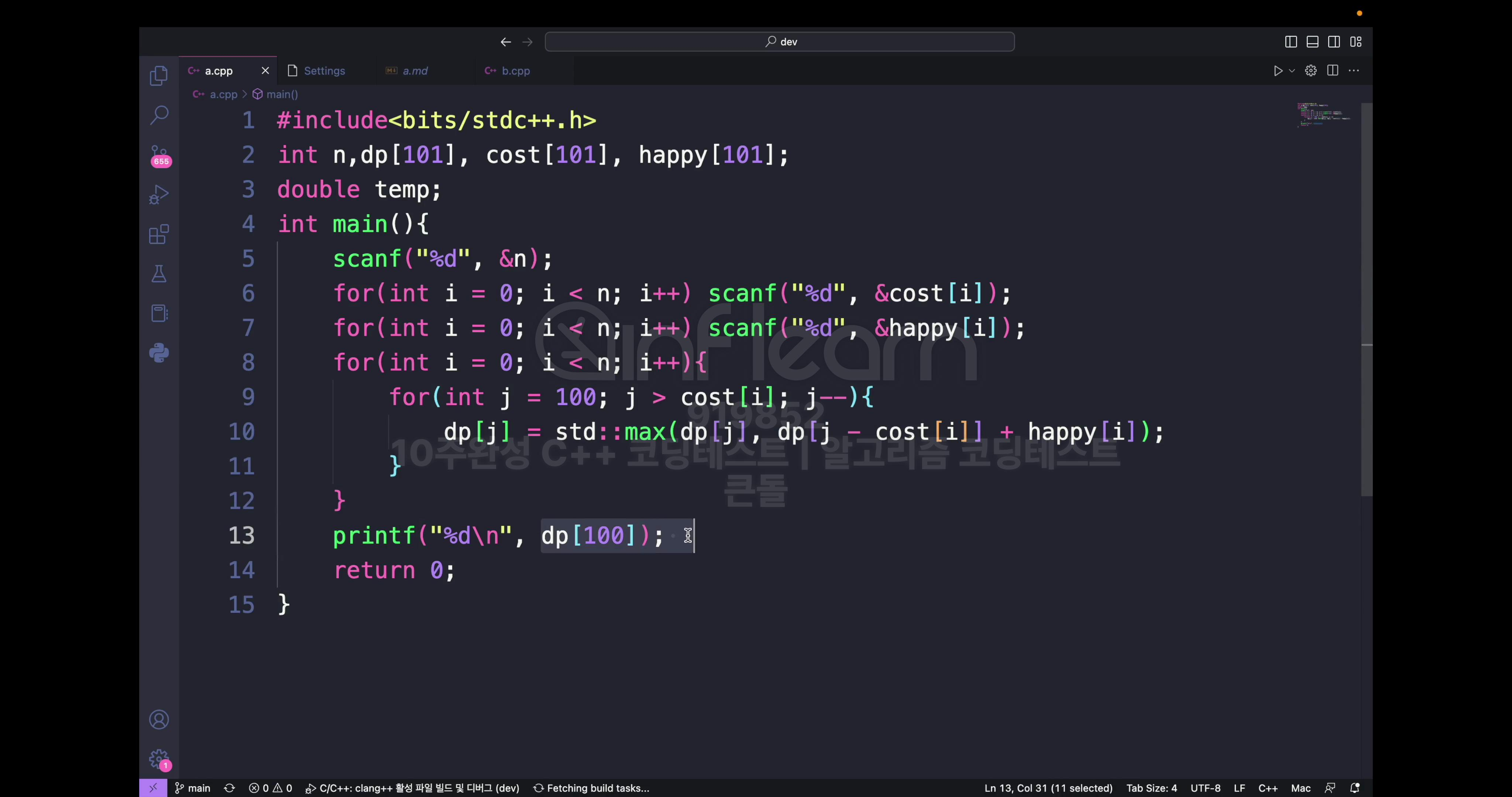 ret=max(ret,dfs(idx+1,cnt-hp[idx])+gi[idx]); //선택o