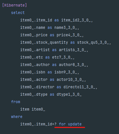 이전과 달리, item을 select 할때 쿼리문에 for update가 추가 되었습니다.