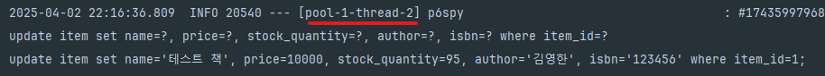 log.info("초기 설정 완료 - 도서 ID: {}, 회원 ID: {}", bookId, memberId);