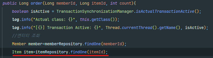 orderService.order(memberId, bookId, orderCount);