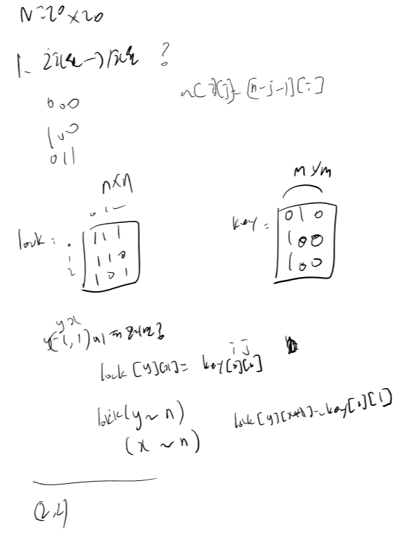 lock 의 y,x에 좌물쇠를 대보면서 전부 1인지 체크하는 방법