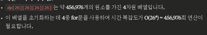 static int dp[][][][] = new int[26][26][26][26]; //(좌표, 이전방향) 값 : 그때 최소비용