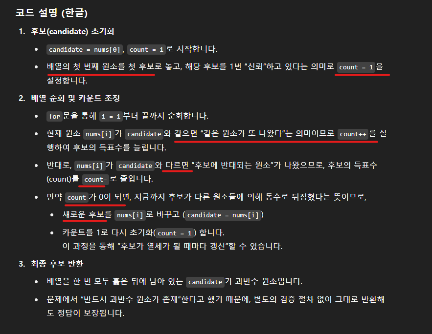 리트코드 169 다수원소 // 배열, 투표알고리즘 본문