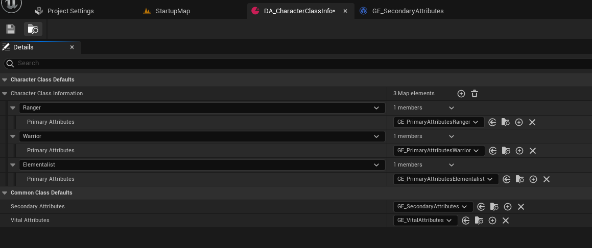 TSubclassOf<UGameplayEffect> PrimaryAttributes; //그 캐릭터만의 고유속성
