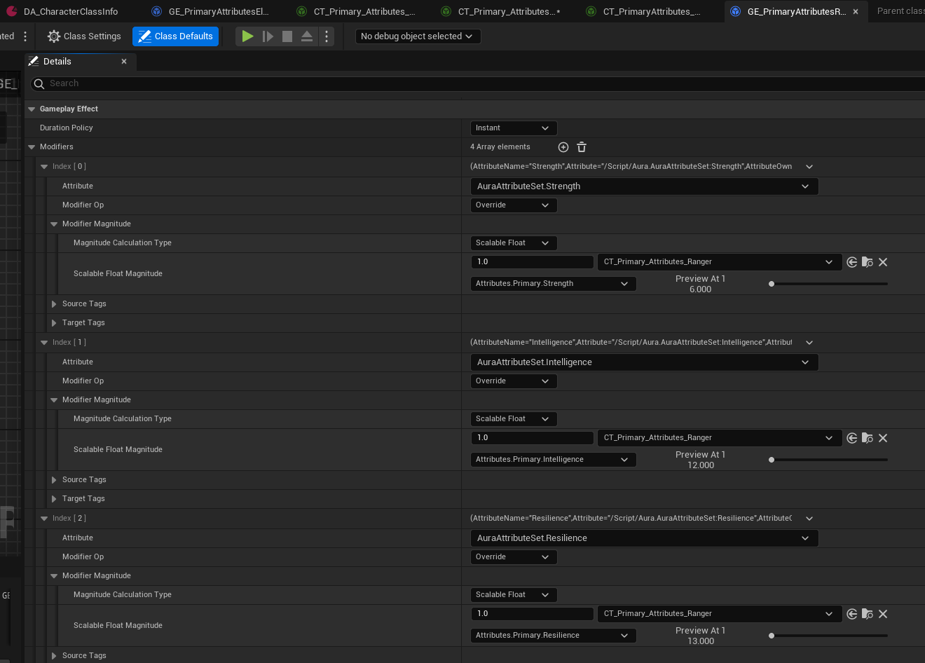 feat : 캐릭터 종류 설계, 레벨별 속성값 설정 · DongHoonYu96/GameplayAbilitySystem_Aura@558542c